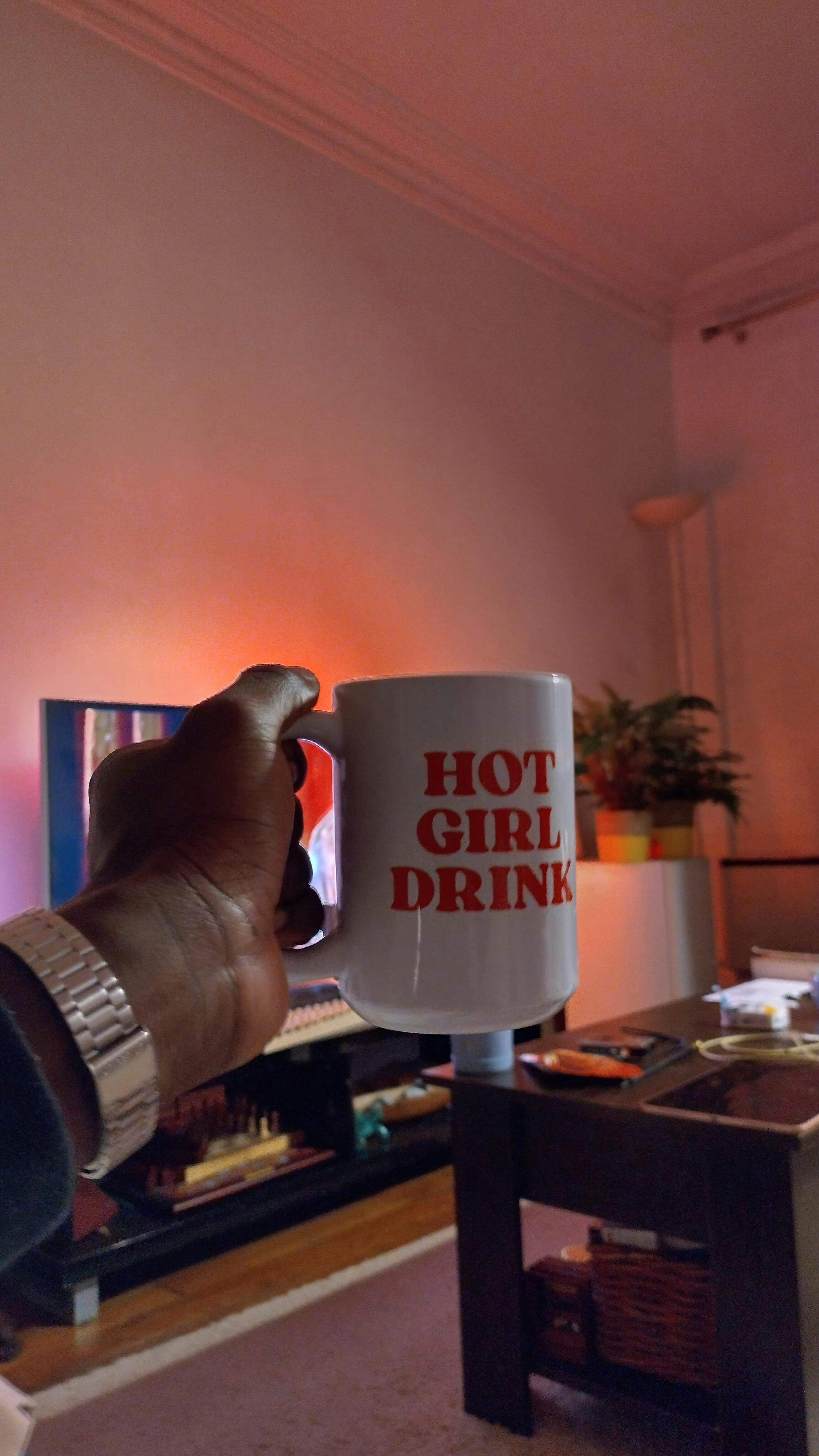 The "Hot Girl Drink" mug is more than just a cup: it's a declaration of self-love, confidence, and good vibes! With its vibrant white design and bold red lettering, it adds a pop of feminine energy to any time of day. Perfect for your morning coffee, afternoon matcha, or evening hot chocolate, it infuses a dose of positive energy with every sip.